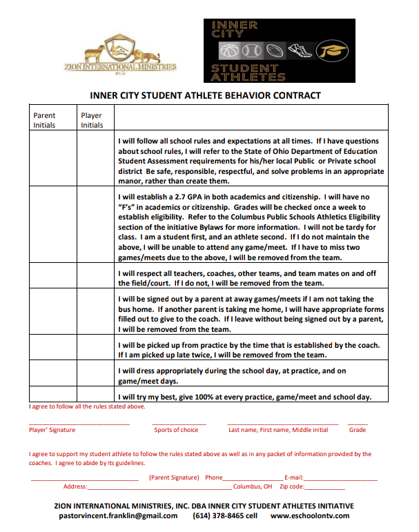ZION INTERNATIONAL MINISTRIES, INC. DBA INNER CITY STUDENT ATHLETES INITIATIVE EIN: 47-4241833 pastorvincent.franklin@gmail.com (614) 378-8465 cell
